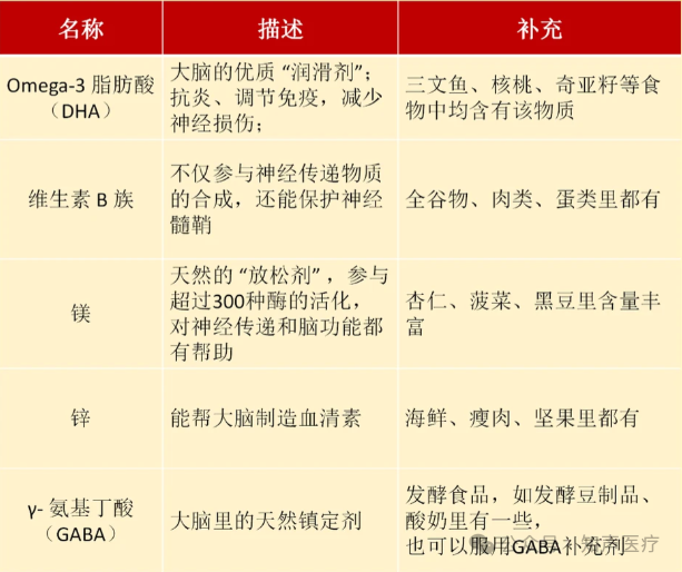 饮食:少咖啡因、酒精、高盐食物;多锌、镁、B族维生素(坚果、深绿蔬菜、全谷物)